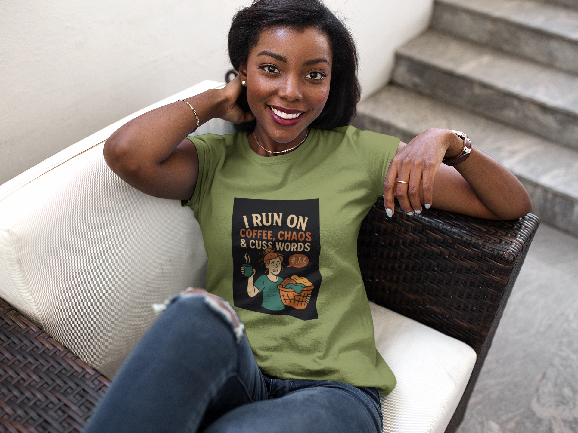 Coffee Chaos & Cuss Words Tee, Funny T-Shirt, Unisex Cotton Tee, Gift for Coffee Lovers, Casual Wear, Humor Apparel